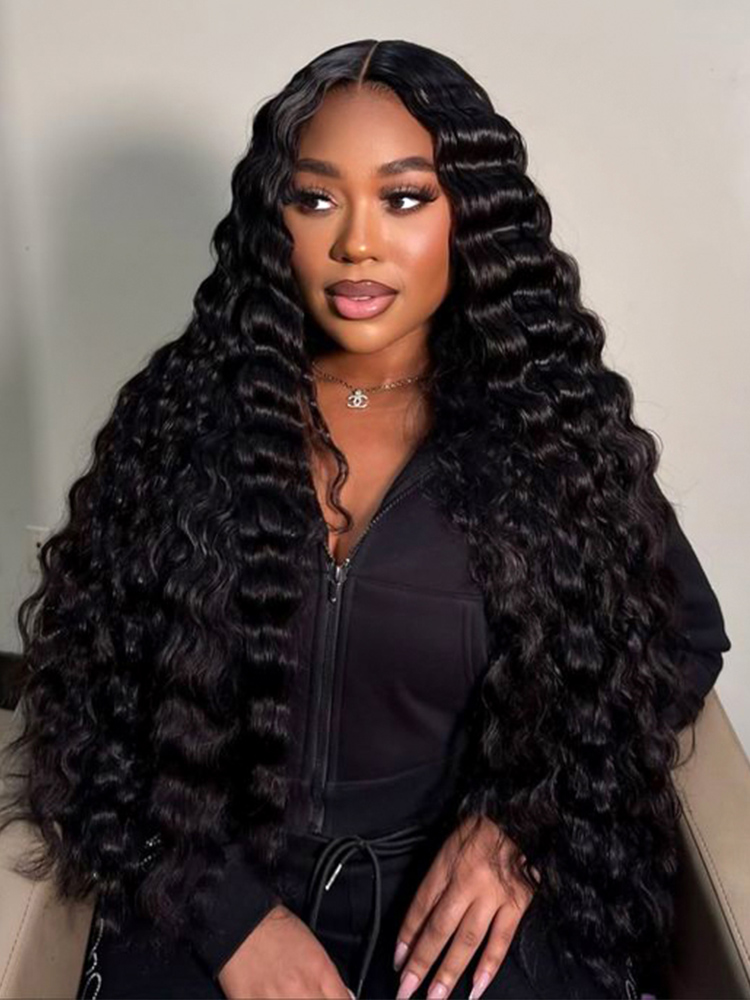 250% Full Density HD 13×6 Lace Frontal Wig in Loose Deep Wave. Enjoy ultra-voluminous, natural-looking hair with a comfortable, undetectable hairline for effortless glamour.