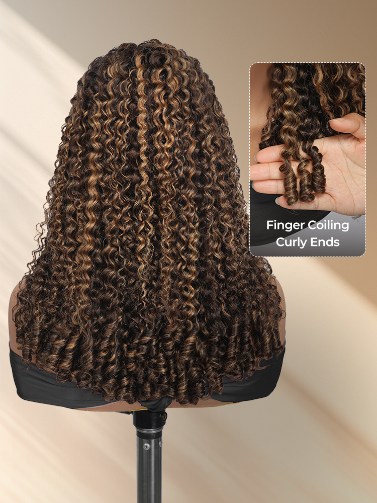 Alipearl Highlight Burmese Curly Wig With Finger Coil Ends, Pre Cut & Plucked 5*7 Lace For Natural Hairline. Curls Maintain Shape For Long, Giving Versatile Styles.