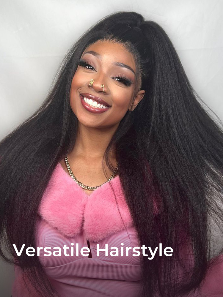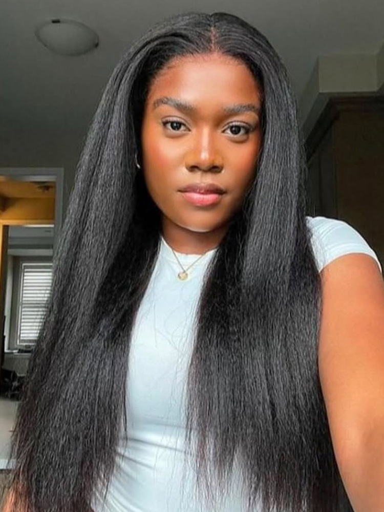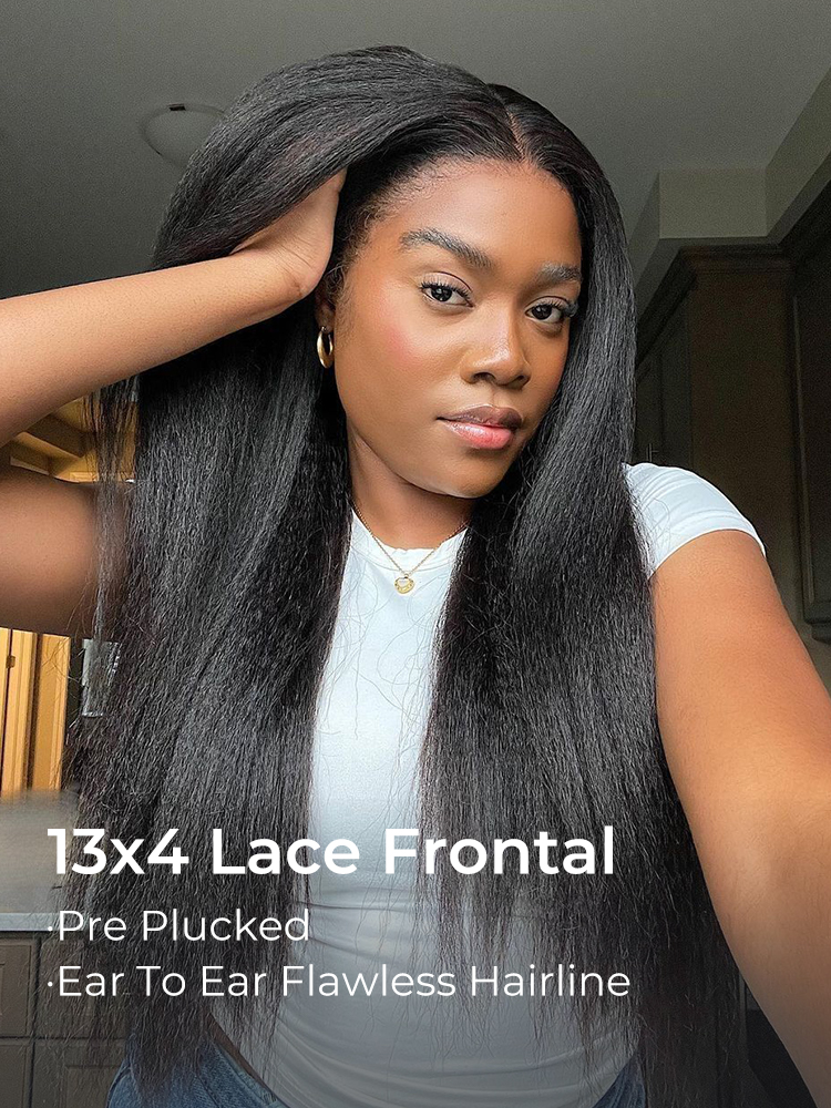 Alipearl Hair Yaki Straight Wig Features Human Hair. Pre Plucked 5×5 Lace Closure & 13×4 Lace Frontal You Can Choose. Get Yours Now!