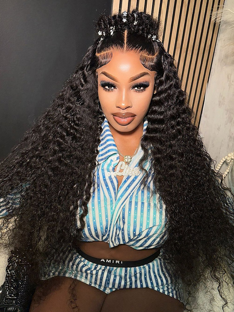 Product 1 ●Glueless Braided Lace Wig ●13×6 Pre Everything ●22 Inch ●Deep Wave; Product 2 ●Glueless Braided Lace Wig ●Cherry Cola Color ●18 Inch ●Straight