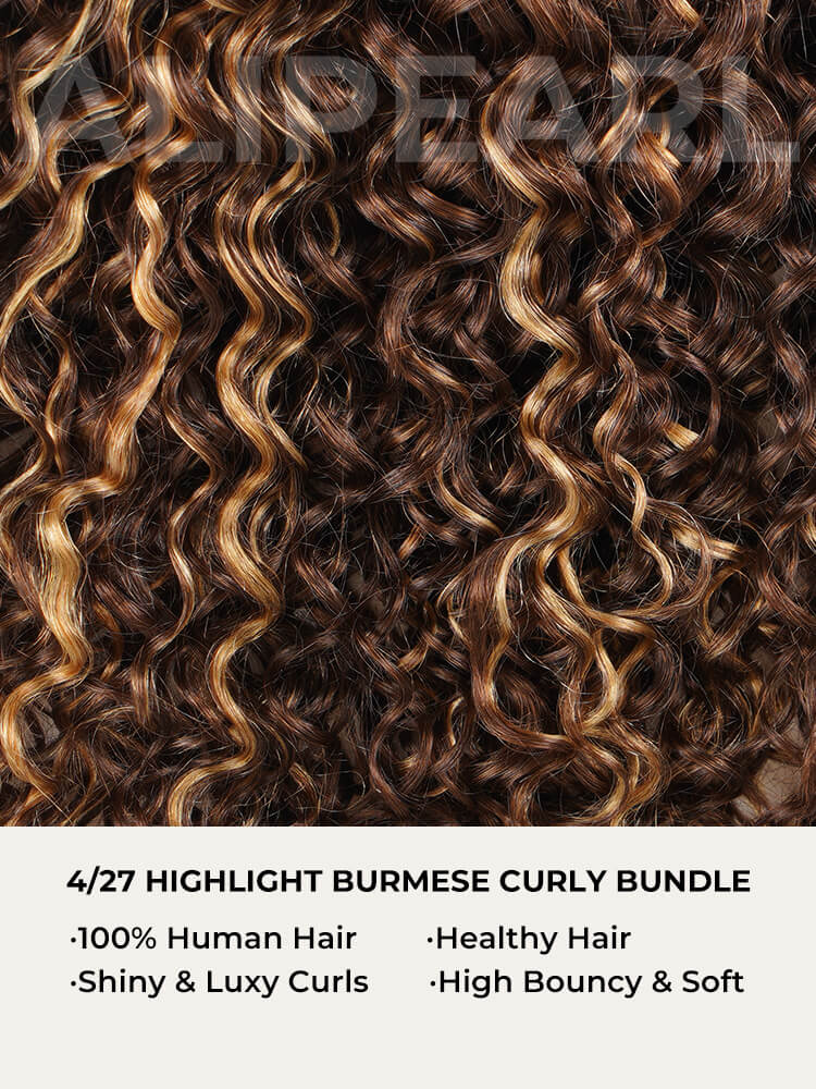 4/27 Highlight Burmese Curly Hair Bundles Human Hair Extension