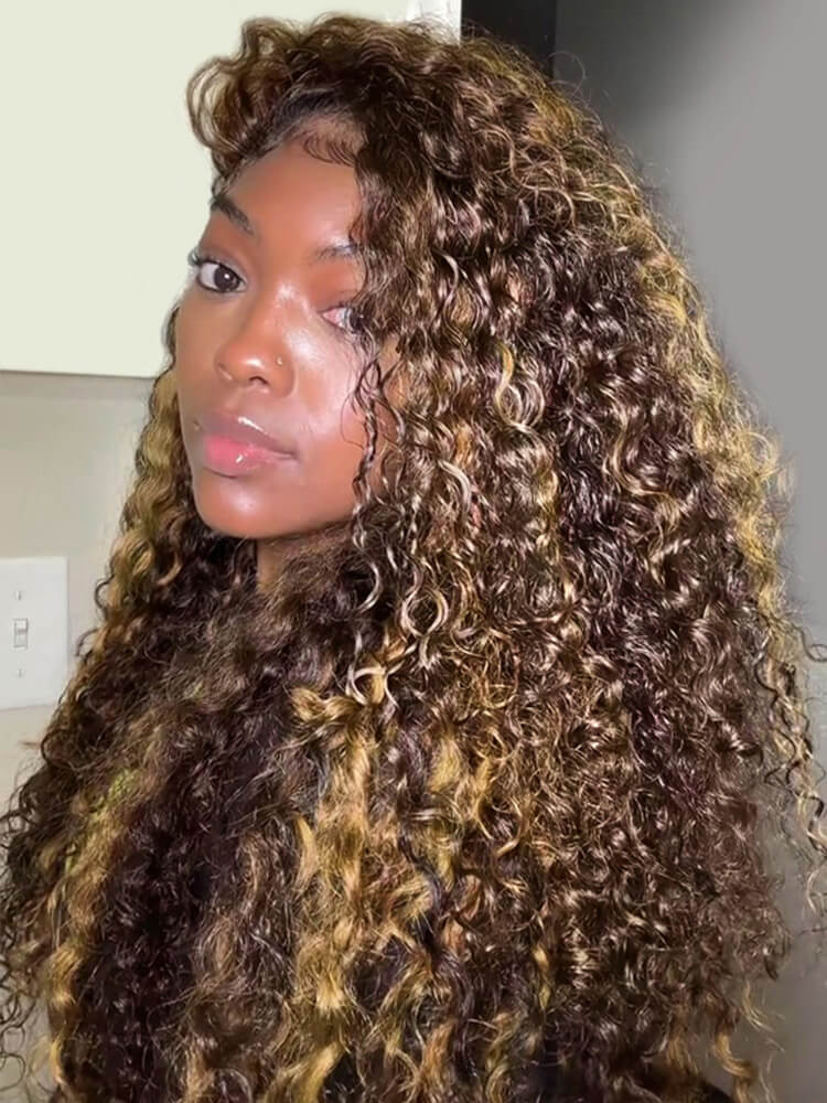 Alipearl Honey Blonde Highlight Burmese Curly Brazilian Human Hair Bundle. 1 Bundle/Pack. Water Wave With Spiral Ends, Full & Neat Curls, Creating Pretty Look!