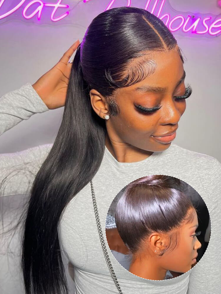 Alipearl Hair Unprocessed Straight 360 Lace Frontal Wig Straight Human Hair Wigs With Baby Hair Pre-plucked Natural Hairline Free Part 360 Lace Wigs 180% 250% Density, Can Be Restyle Ponytail