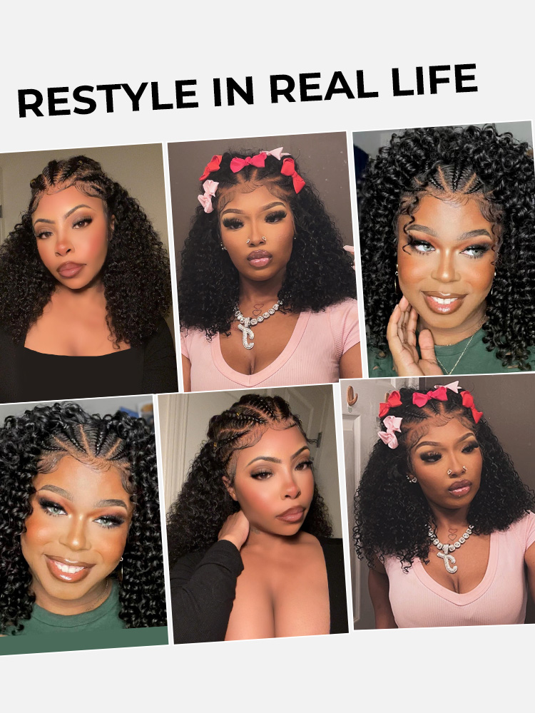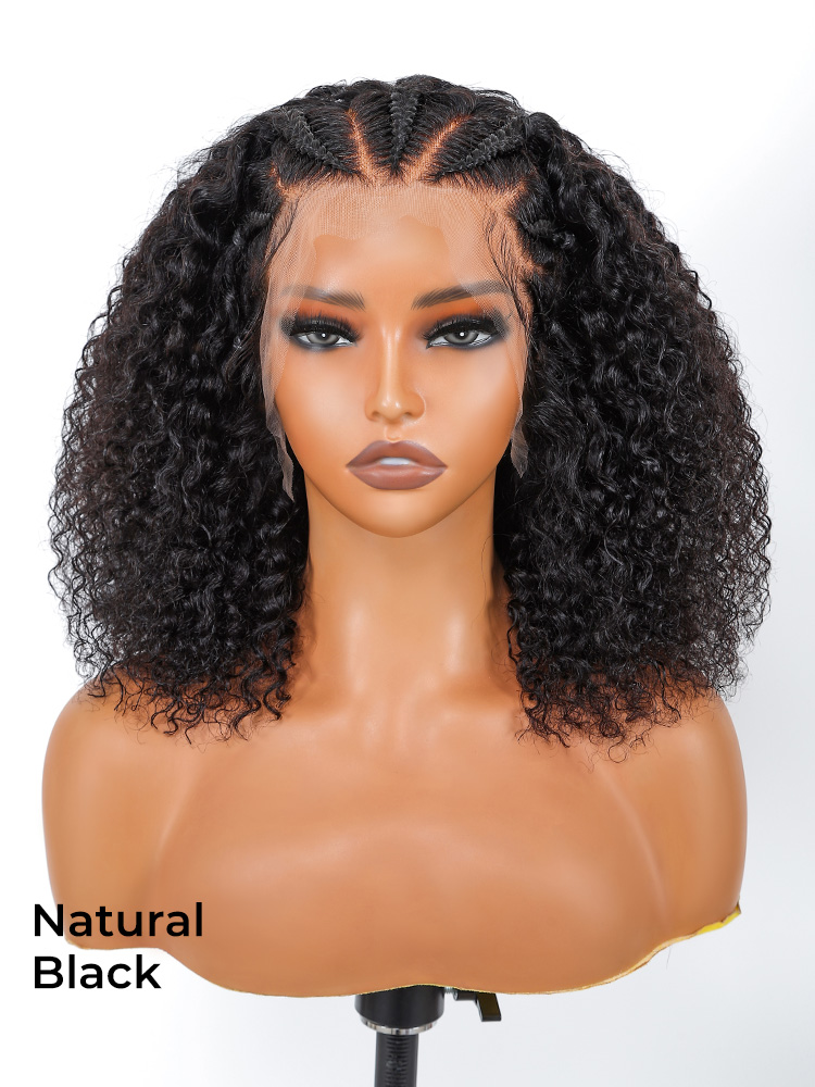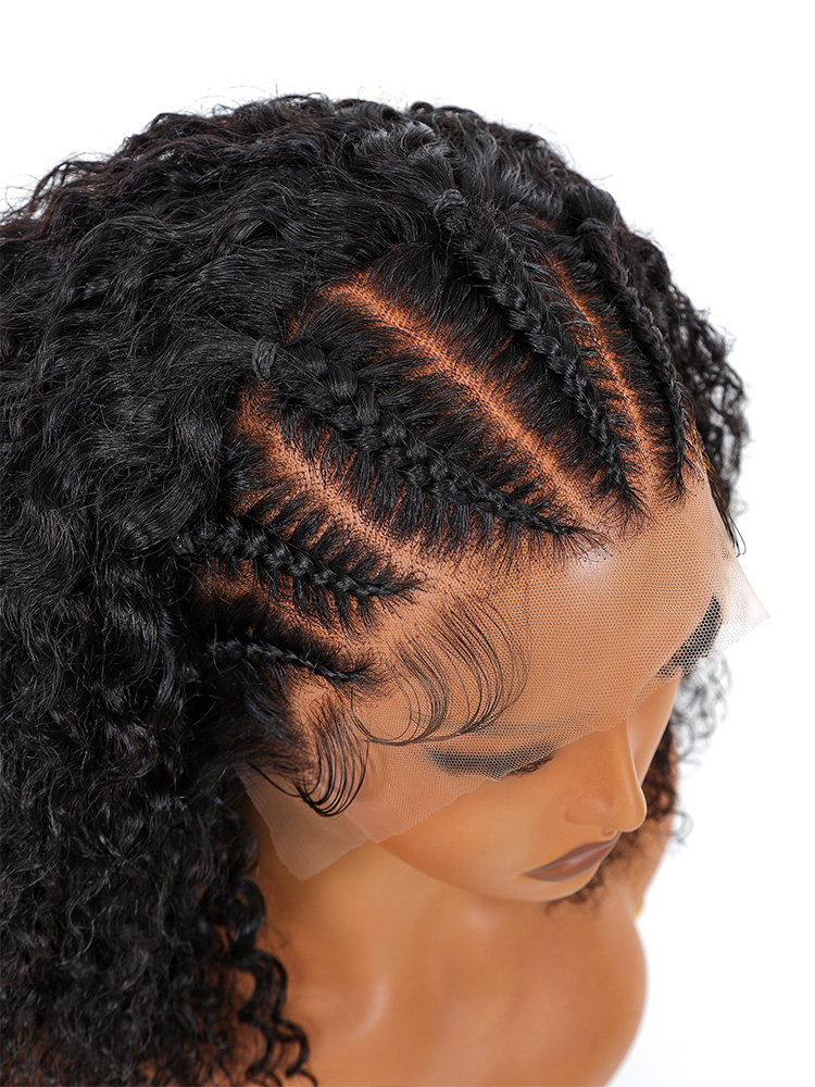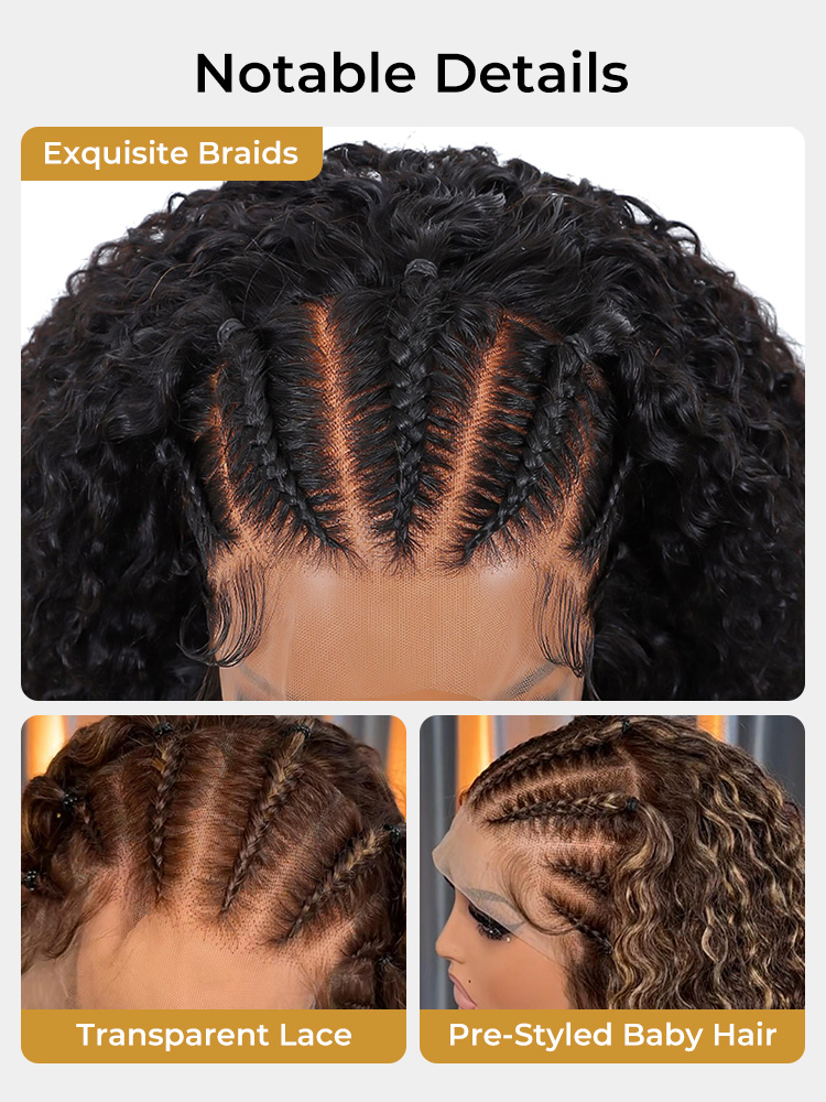 Alipearl 16 Inch Stylish Half-Cornrows Half-Curly Braided Wigs Styles,Striking Cornrows Flow Into Lush Curls, High Quality 100% Human Hair Curly Pre Braids Lace Front Wigs With Natural Hairline, Baby Hair Around, Thick Hair With Curly Ends,Get It Now!