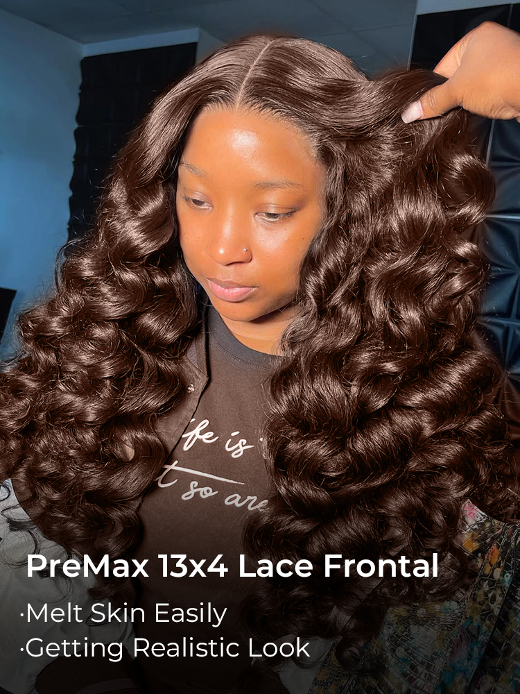 Alipearl 250% High Density #4 Chocolate Brown Wand Curly Wig With 13×4 Transparent Lace, Melt Any Skin Tone Easily. Bouncy Weaves Getting Full And Natural Look.