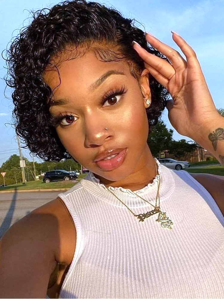 Alipearl High Quality Pixie Cut Wig, Short Curly 13×6 Lace Frontal Wigs With Natural Hairline & Deep Hair Parting, 6 Inch Curly Pixie Lace Wig For African American, Buy It At A Cheap Price Now!
