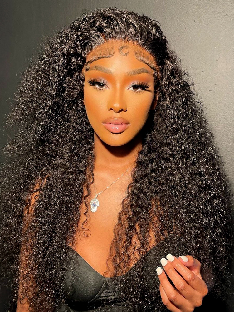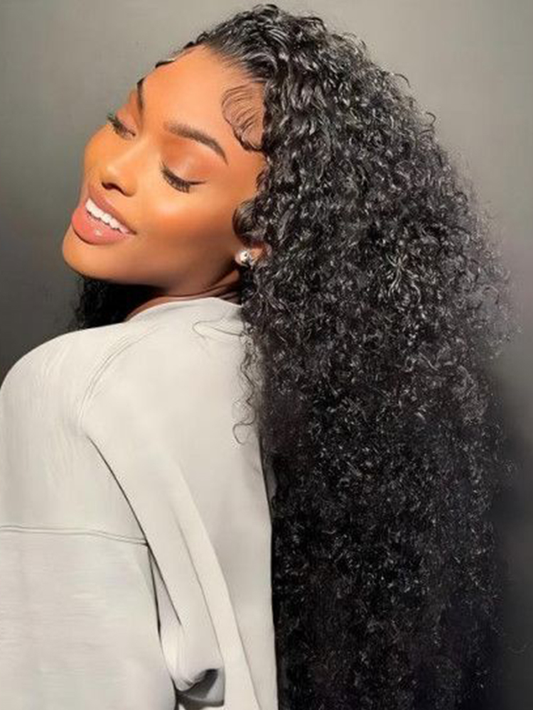 Alipearl Hair Curly Human Hair Wigs With Baby Hair 13×4 Transparent Lace Frontal Wig Natural Black Full Ends Wigs Made By Bundles With Lace Frontal Closure
