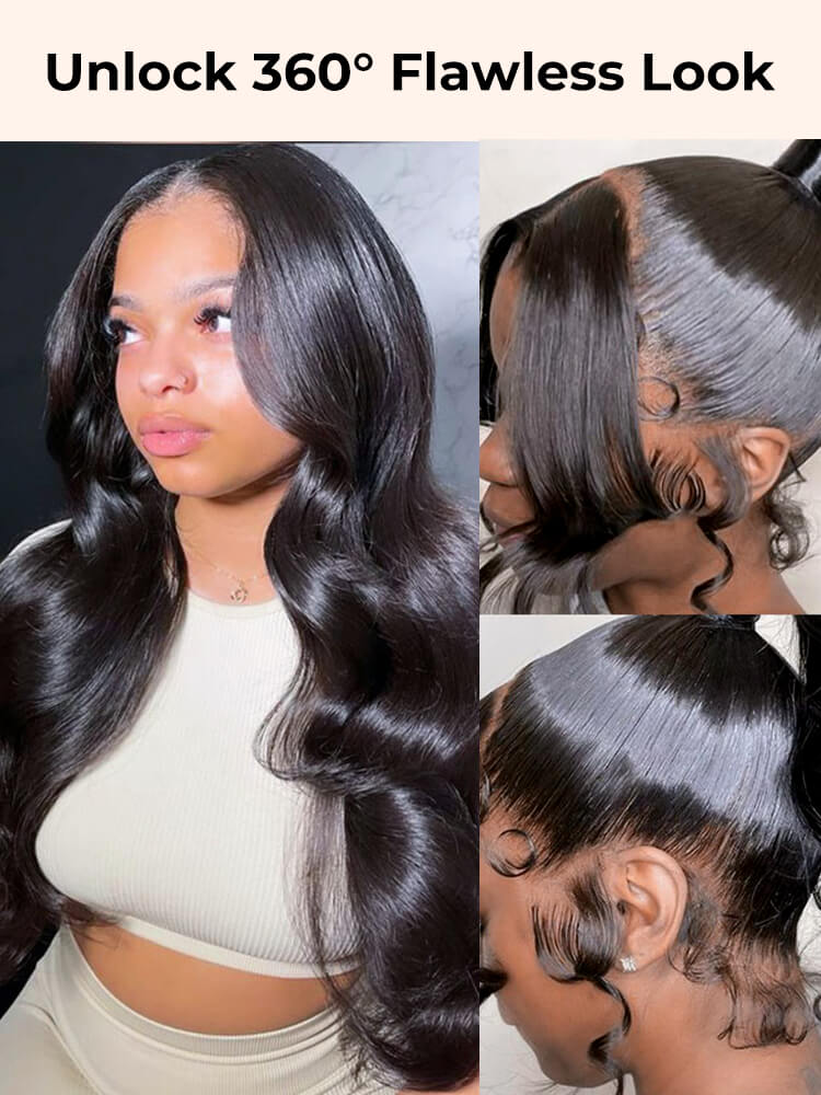 Alipearl Hair Body Wave 360 Transparent Lace Frontal Wig Natural Color Body Wave Human Hair Wigs 100% Virgin Hair Pre-plucked with Baby Hair 360 Lace Wigs 180% 200% 250% Density, Can Be Restyle Ponytail