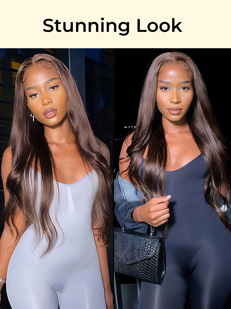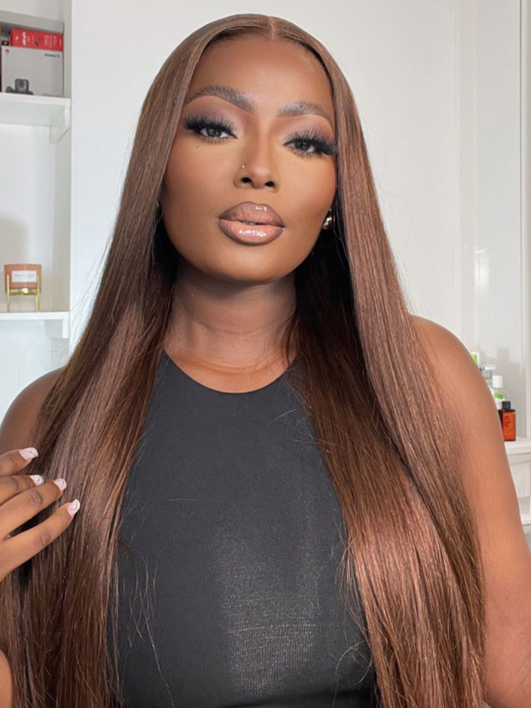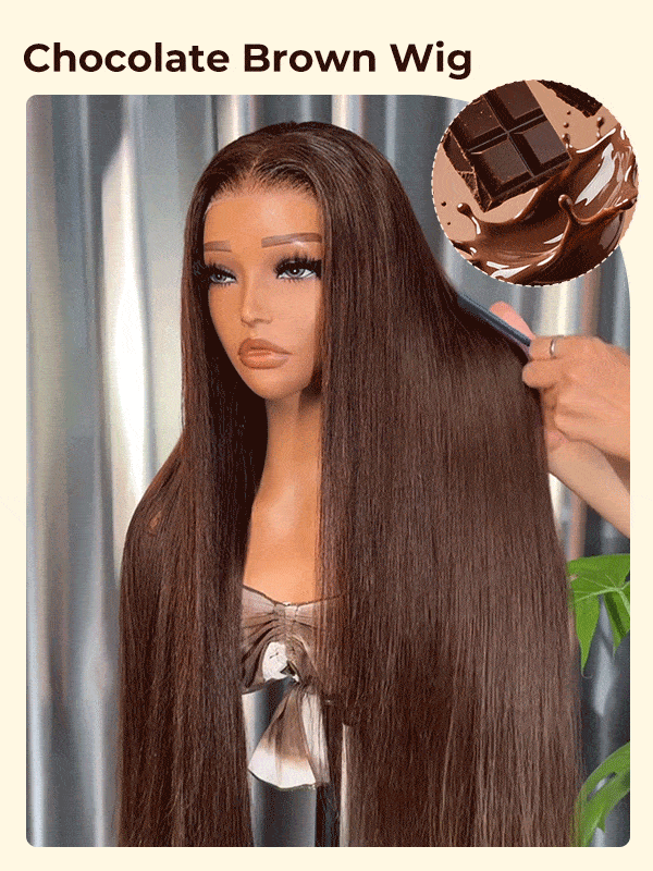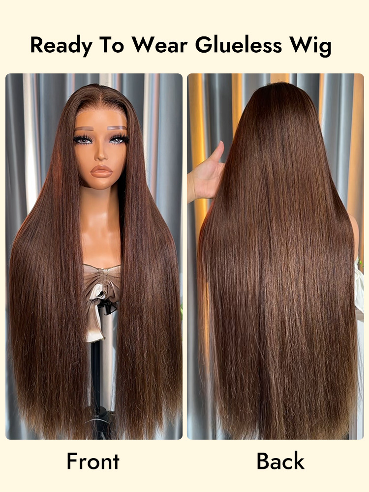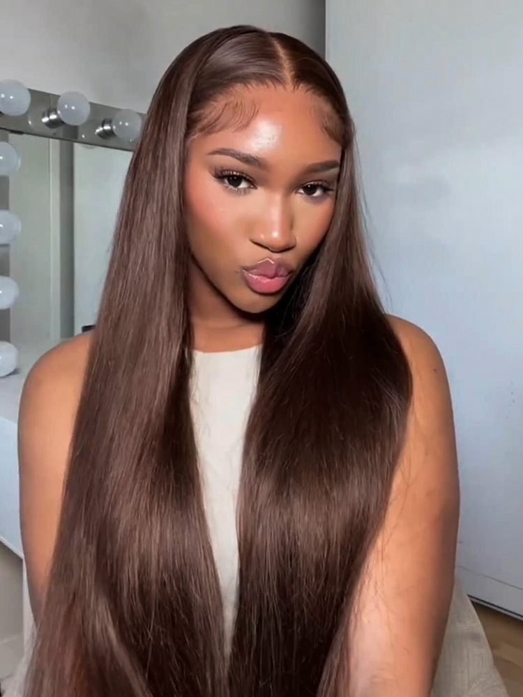 Alipearl Chocolate Brown Color Wigs, #4 Color Straight Human Hair Glueless Ready To Go Transparent Lace Front Wigs 180% Density 18-26 Inches Thick Hair With Pre-plucked Hairline, Suitable For All Skin Tones, Get It In 1-2 Working days!