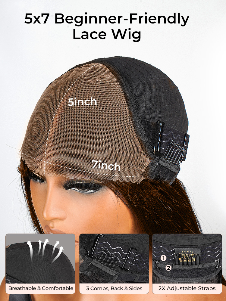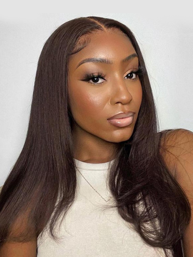 Glueless Chocolate Brown Color Straight Human Hair 7*5 Closure Wig Ready To Go For Beginners Pre Cut LaceGlueless Chocolate Brown Color Straight Human Hair 7*5 Closure Wig Ready To Go For Beginners Pre Cut Lace