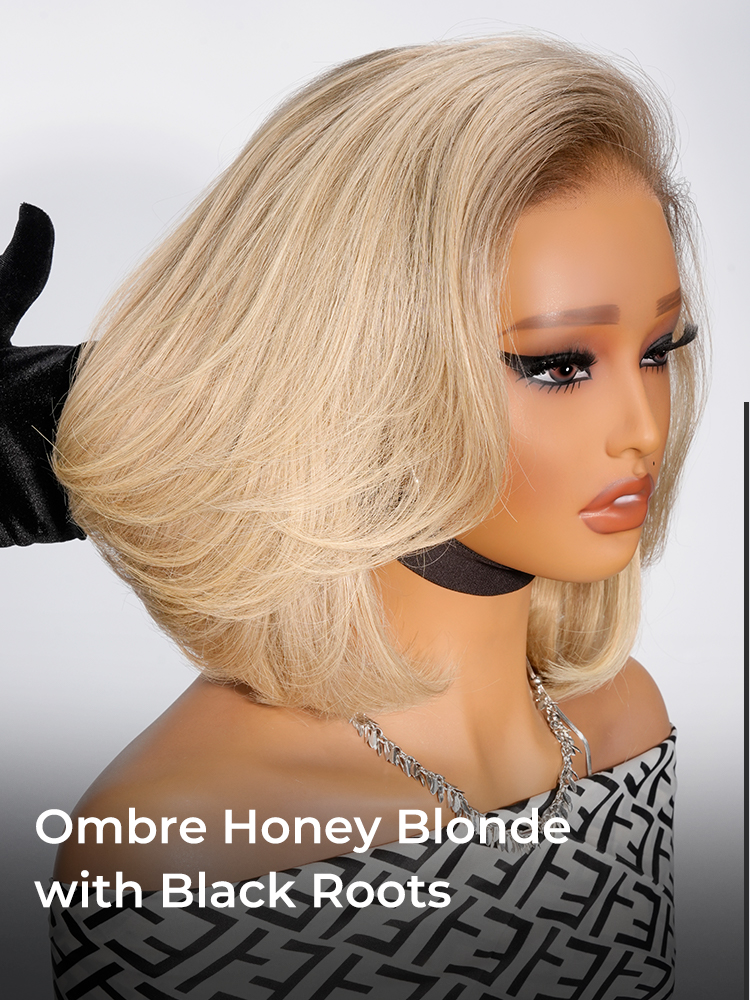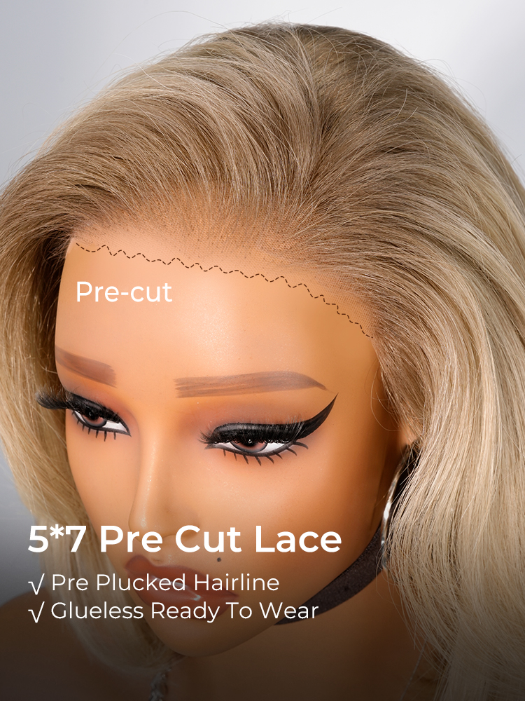 Ombre Blonde Straight 5×7 Ready To Go Layered Cut Short Bob Wig Human Hair