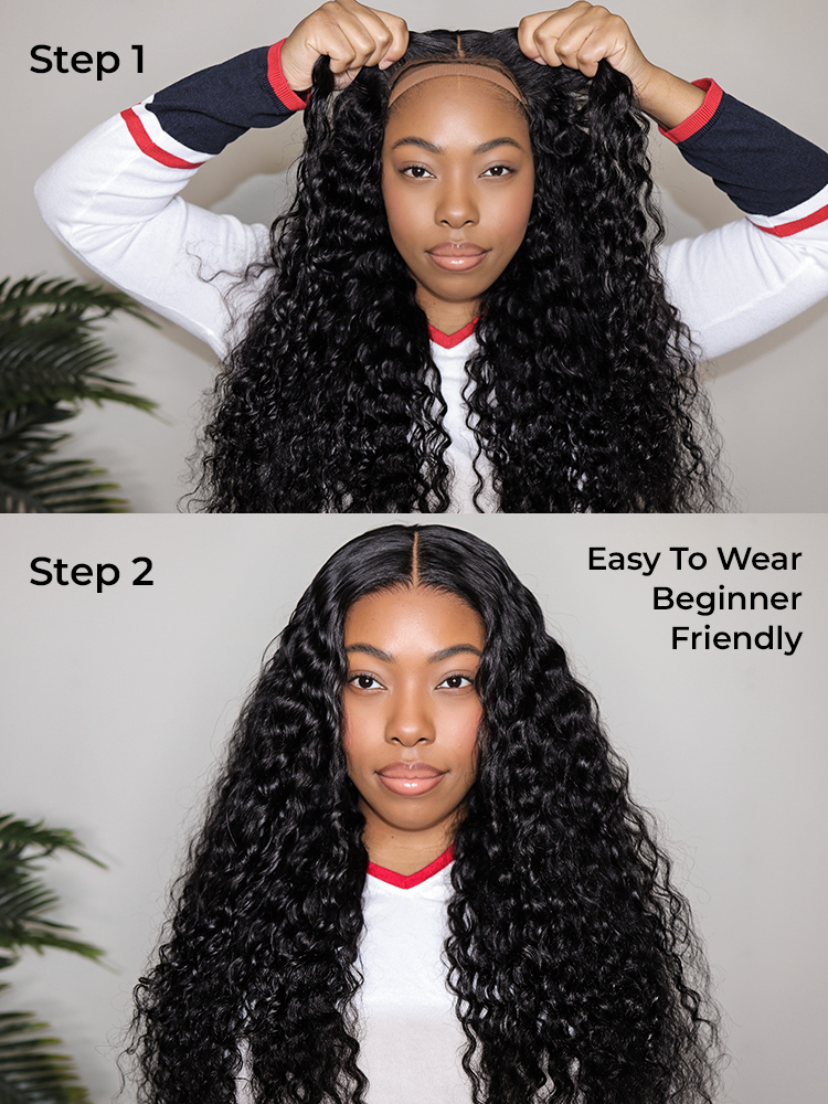 No Glue Ready To Wear Wigs Deep Wave 5s Go Pre Cut 5x7 Lace Closure Wigs For WomenNo Glue Ready To Wear Wigs Deep Wave 5s Go Pre Cut 5×7 Lace Closure Wigs For Women