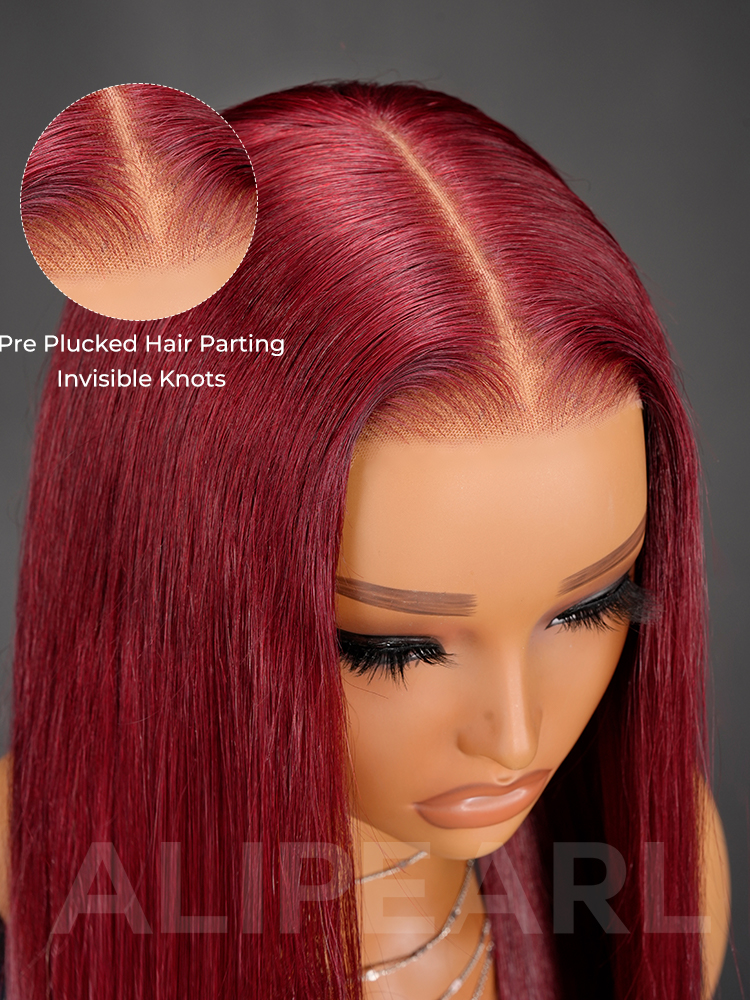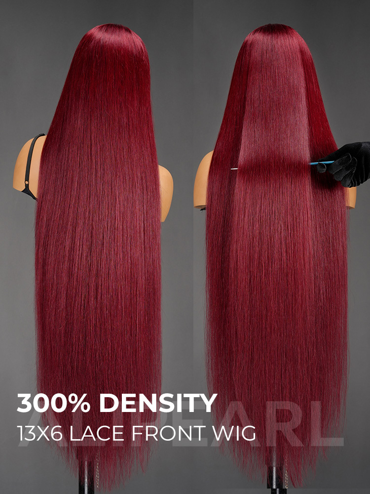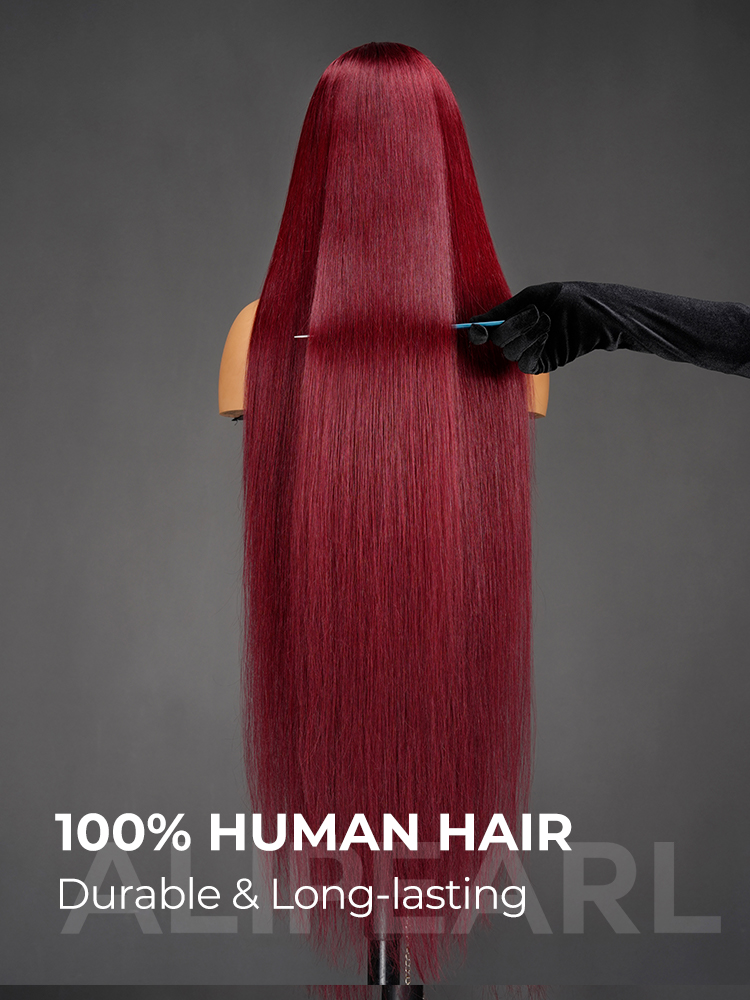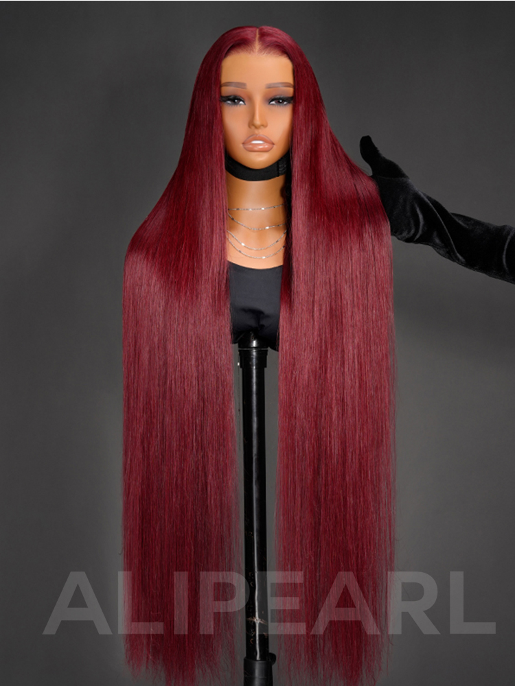 AliPearl Hair Ultra-Long 40 Inch 99J Burgundy Human Hair Wigs 300% Density Silk Straight 13×6 Lace Front Wig Pre Plucked Natural Look Deep Parting Hairline Customized Designer Wig