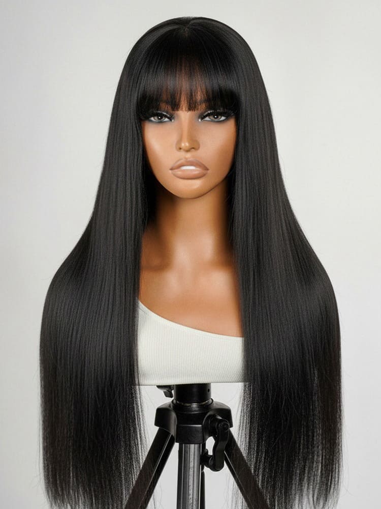 Alipearl High Quality 100% Human Hair Bangs Wigs, No Tangle No Shedding Straight Hair 5×5 Lace Closure Wigs 180% Density On Sale