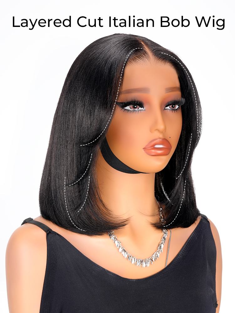 Upgrade your look with our Human Hair Layered Italian Bob Wig! 100% real hair, glueless ready-to-wear. Chic, layered, and effortless style. Perfect for any occasion!
