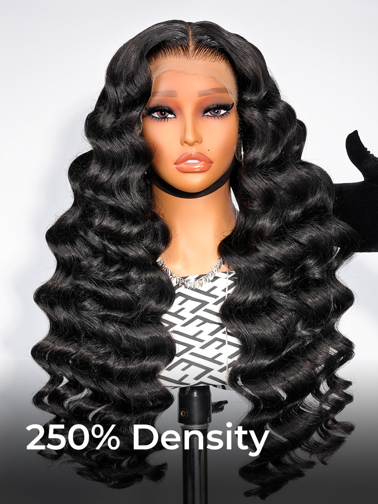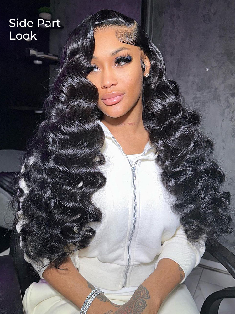 New Bouncy Loose Wave Wig Human Hair With Parting Max 13*6 HD Lace Frontal, Pre Plucked Hairline, Saving More Time And Effort To Get Realistic Look.
