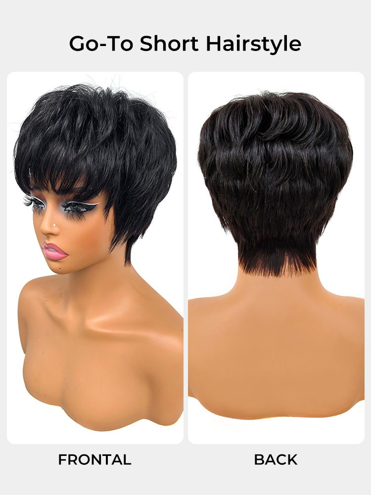 Enjoy Straight Glueless Pixie Cut Ready To Go Wig. Cute Hair Bang Frames Face Beautifully.13×4 Large Pre-Cut Lace Can Be Restyled Freely And Makes Wig Easy To Wear.