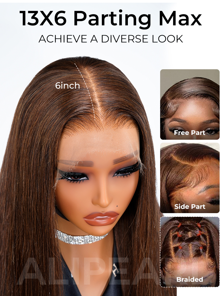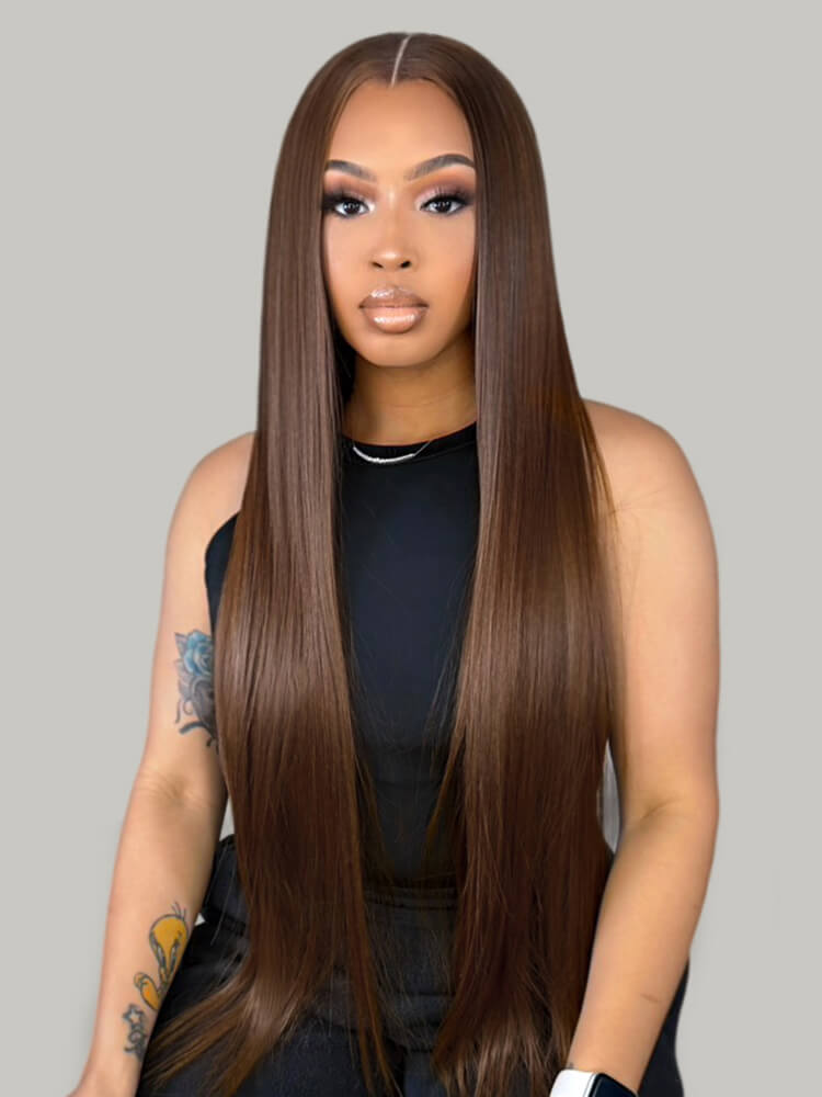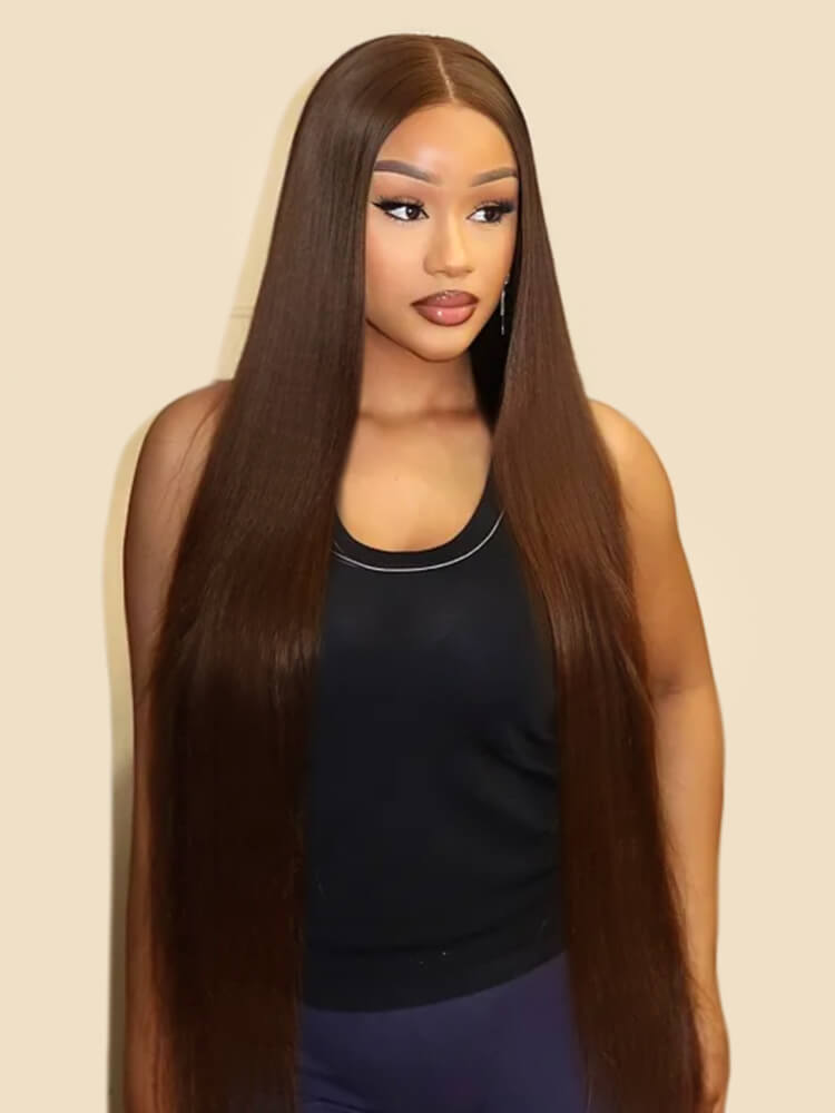 Chocolate Brown Silky Straight 13×6 HD lace Frontal Long Human Hair Wig